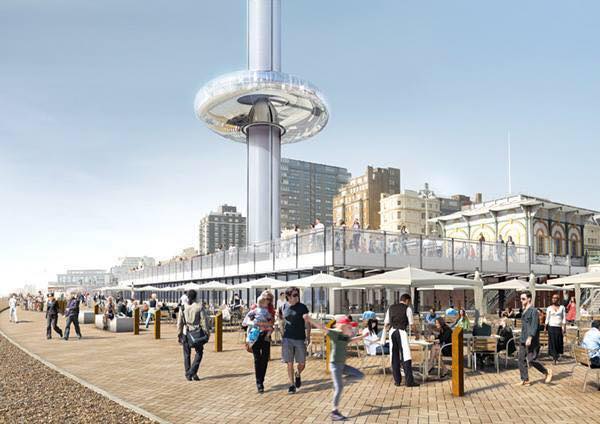 Ο «τροχός» που βρίσκεται στις όχθες του ποταμού Τάμεση στην βρετανική πρωτεύουσα, είναι κατά κάτι τι κοντύτερος (6 μέτρα) από τον καινούργιο πύργο παρατήρησης, που όπως προδίδει και το όνομα του, σας χαρίζει πανοραμική θέα, 360ο μοιρών. Το «BA i360» που κόστισε περί τα 54 εκατομμύρια ευρώ έχει τοποθετηθεί δίπλα στην πασίγνωστη «δυτική προβλήτα» της πόλης του Μπράιτον, 150 χρόνια μετά και τα εγκαίνια της το 1866 απο τον Ευγένιο Μπερτς.